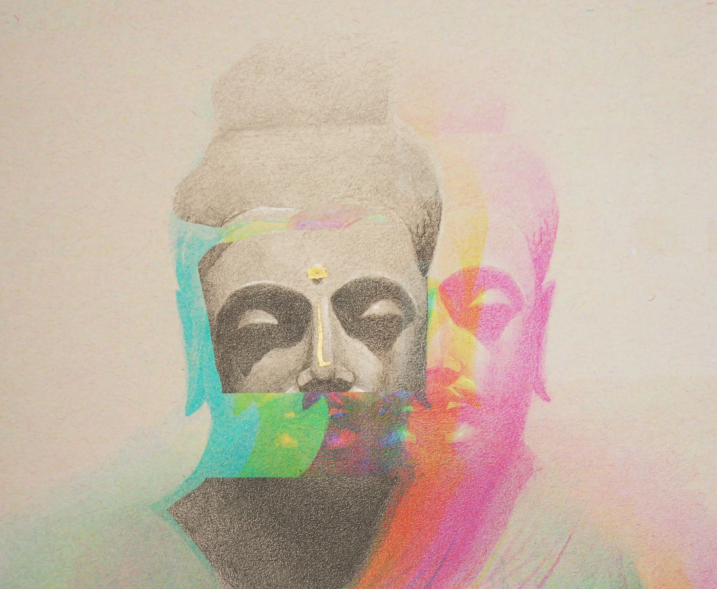 Cycles of drawing and digital modification create strata of physical and digital media, reminiscent of our cultural modifications of worship in the digital age.