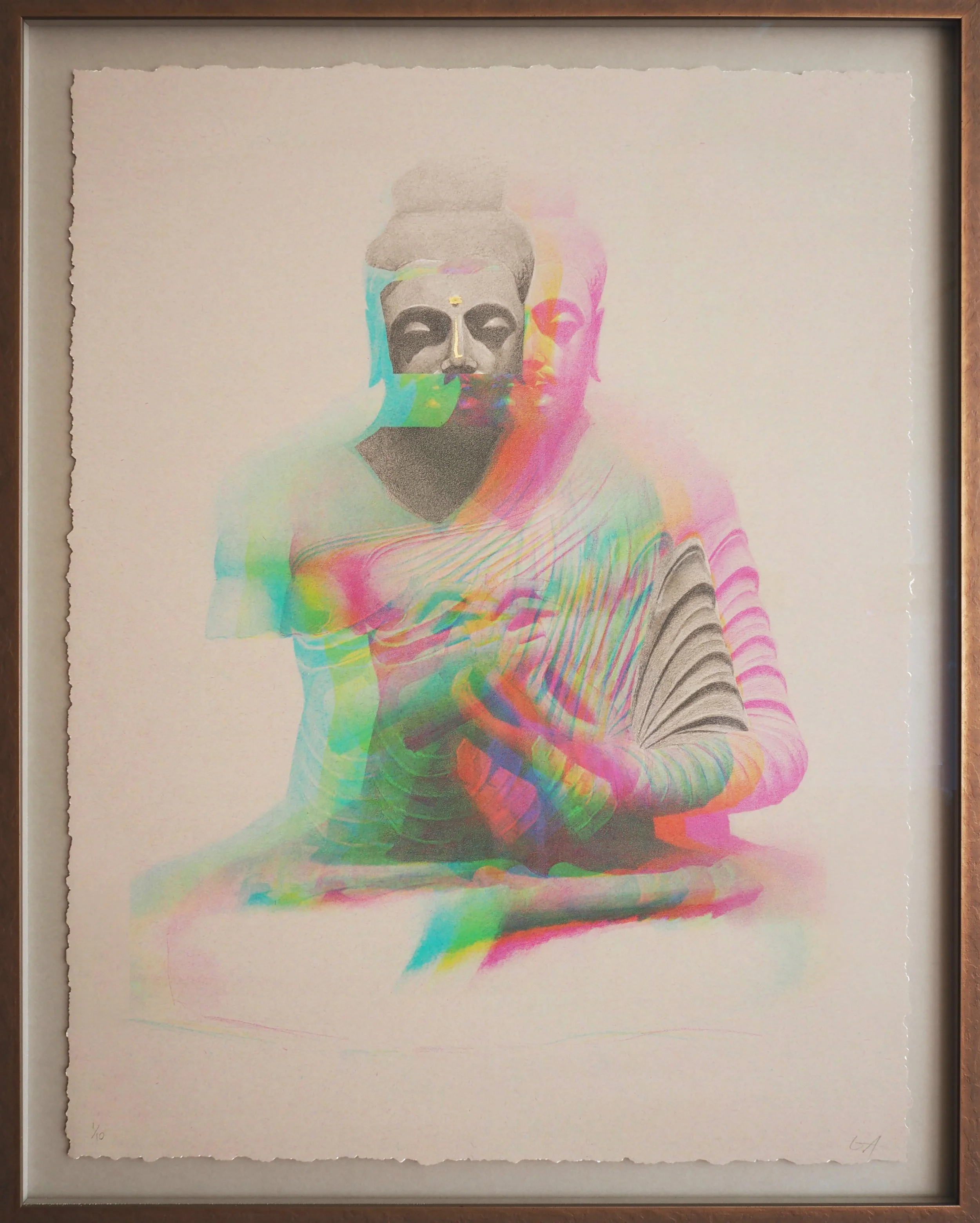Each print is hand-finished with gold leaf, sumi ink, or charcoal, and is therefore completely unique